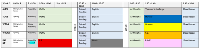 Both classes have very similar timetables. We usually do our Maths and English core subjects in the morning, then we teach Wider Curriculum lessons in the afternoons.